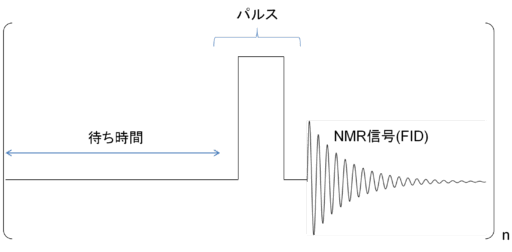 SP法は最も単純な測定法で、測定核種をラジオ波の照射により励起させ、FIDを観測する方法です【図1】。パルスシークエンスは溶液の1H NMRと同じですが、固体NMRではMAS回転を行うため、溶液NMRとの区別のためSPMAS法、1H MAS NMR等と呼ばれます。