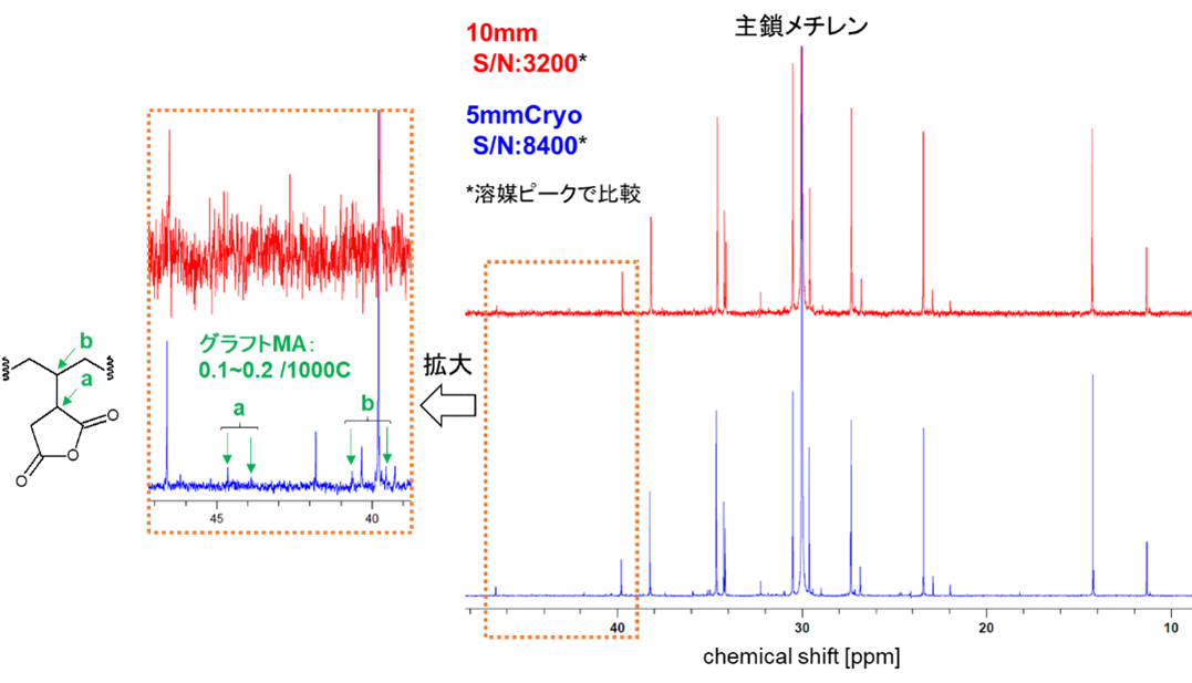 5mmクライオプローブではPEの分岐構造に加えて微量のグラフト構造まで検出