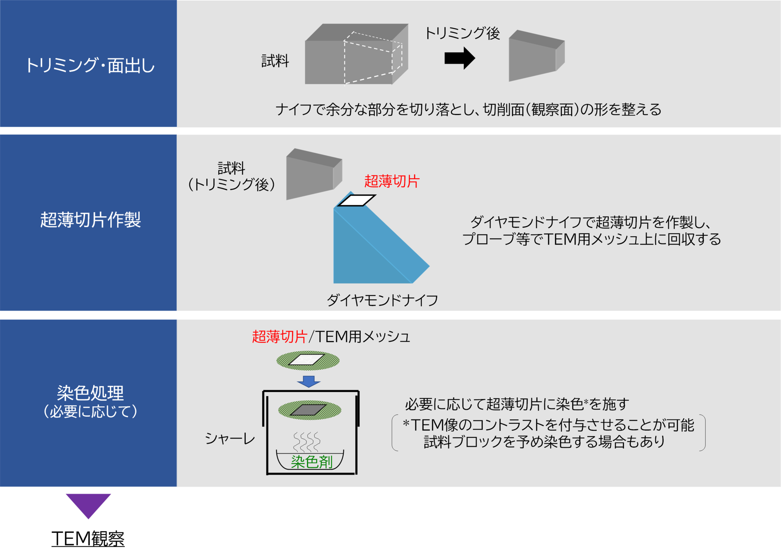 ミクロトーム、染色、TEM、切片、前処理、ポリマー